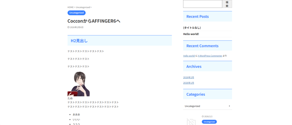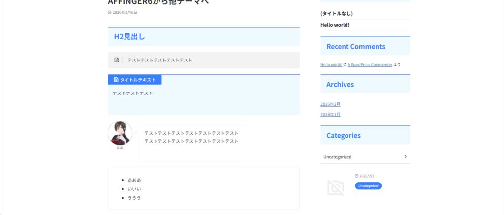 AFFINGER6から別のWordPressテーマへ移行した場合についても、実際に検証しました。