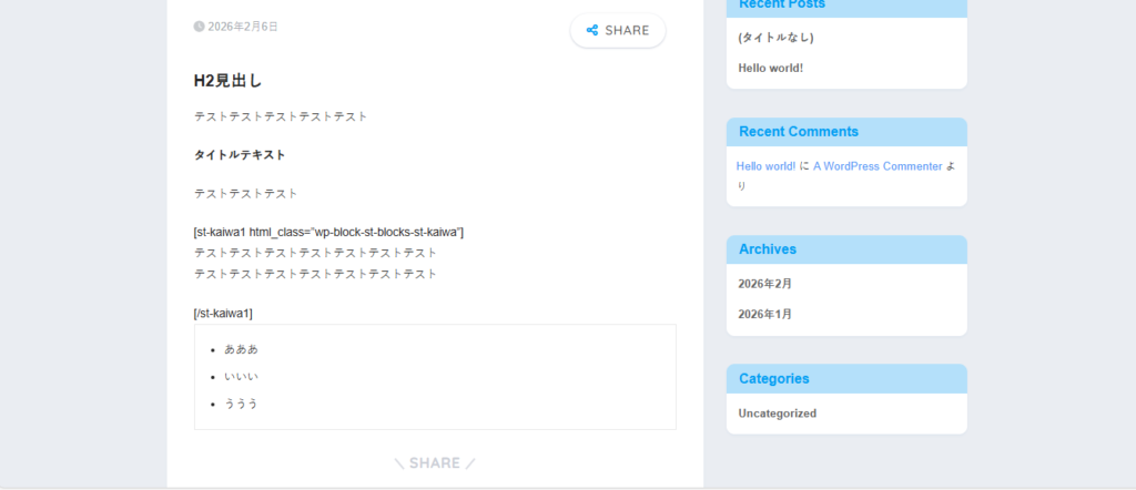 AFFINGER6で作っていた記事は、行間、改行、文字装飾、吹き出し、ボックス、見出し下の余白といった表示に関わる要素がほぼすべて破綻します。見出し自体は残りますが、本文は読み物として成立しない状態になります。
