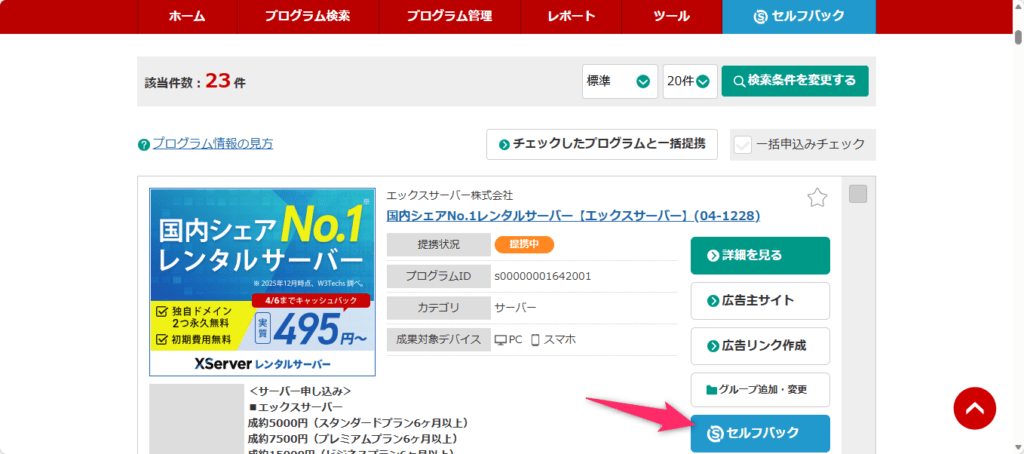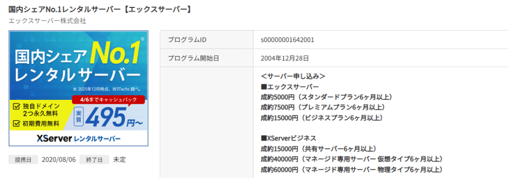 たとえば、ASP経由でエックスサーバーに申し込むと、5,000円の報酬を受け取ることができます。