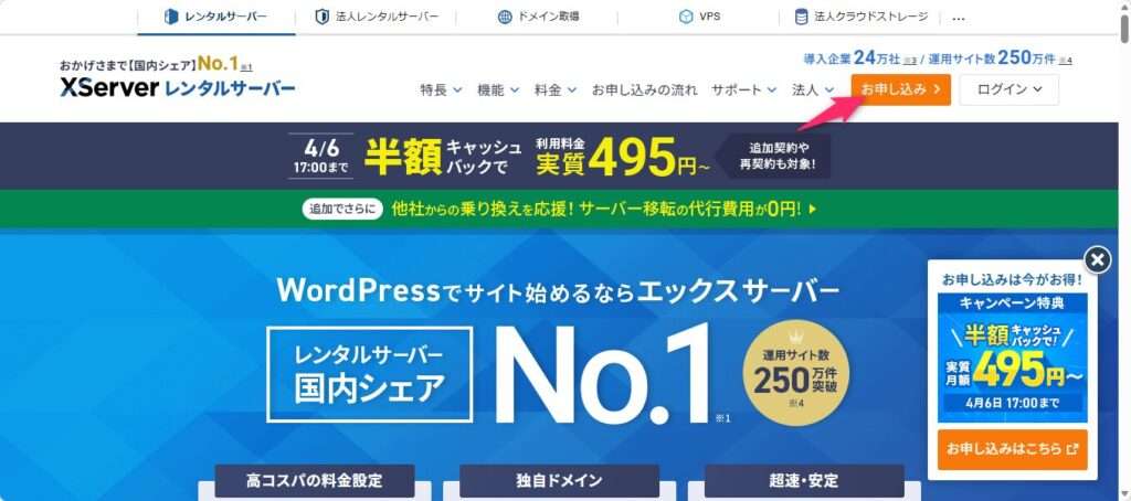 - エックスサーバーの割引