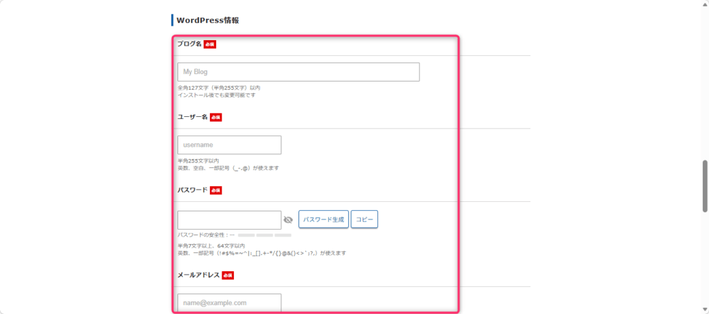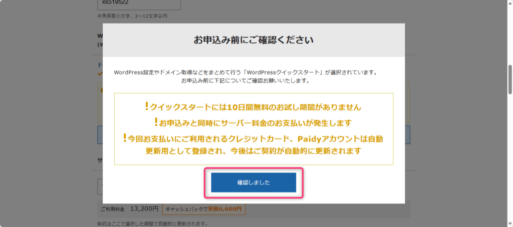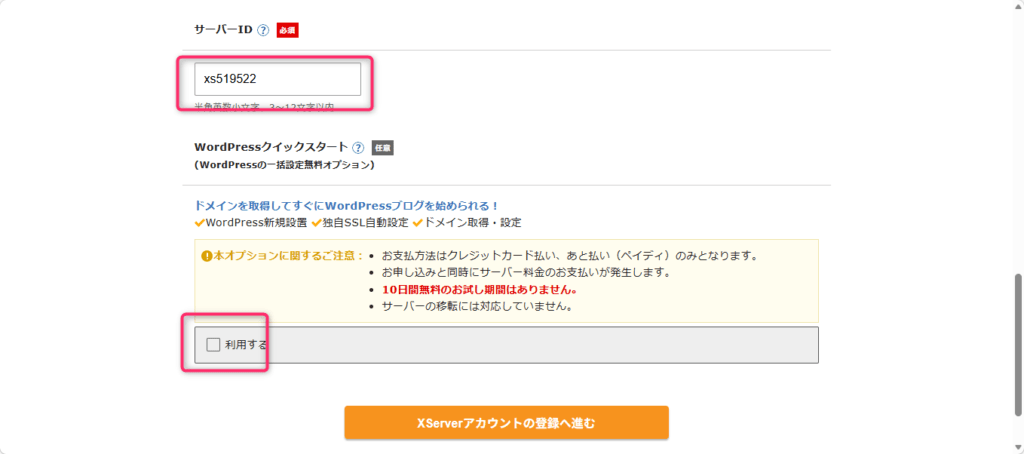 サーバーIDを入力し、「WordPressクイックスタートを利用する」にチェックを入れます。
