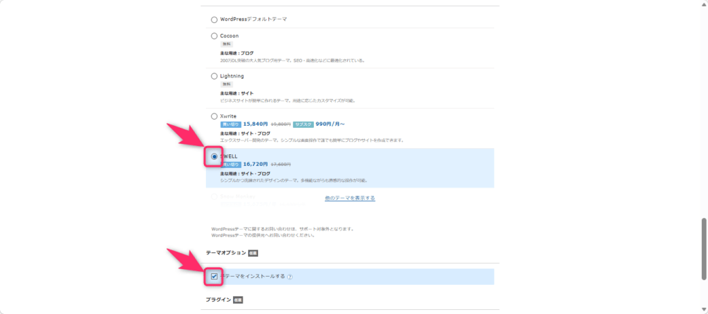 SWELLをエックスサーバー経由で購入する場合、サーバー契約とテーマ購入を同時に決済する形になります。
