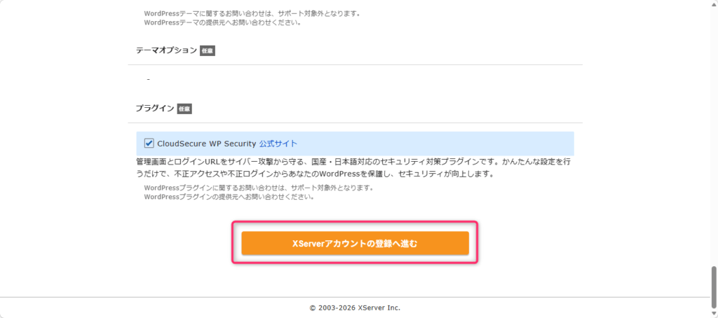 Xserverアカウントの登録へ進むボタンをクリックします