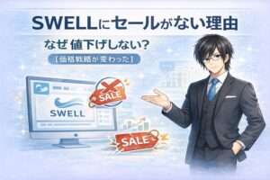 SWELLは公式セールを行っていないため、テーマの価格そのものを下げる方法はありません。