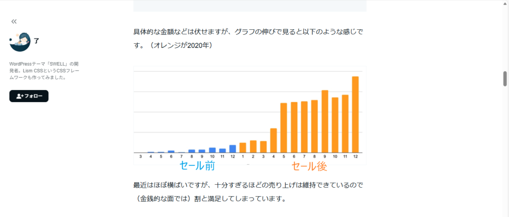ためちなみに、SWELLのテーマ代17,600円は、条件によって差はありますが、おおよそ2か月〜9か月で回収できる計算になります。