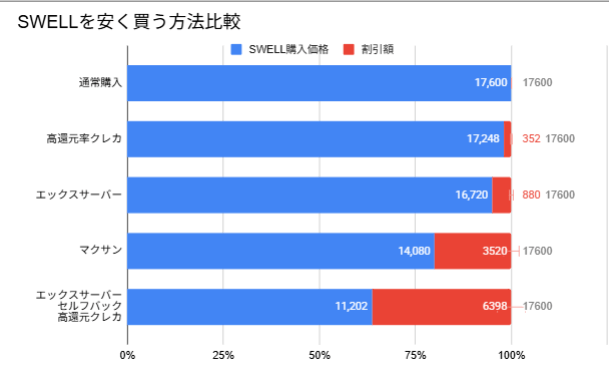 では次に、これらの購入ルートの中でSWELLを安く買う方法を見ていきます。