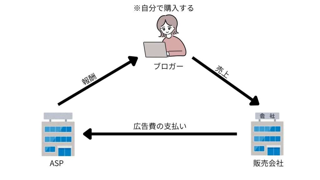 ASPのセルフバック(自己アフィリエイト)は、サービスや商品に自分で申し込み、その成果報酬を受け取る仕組みです。