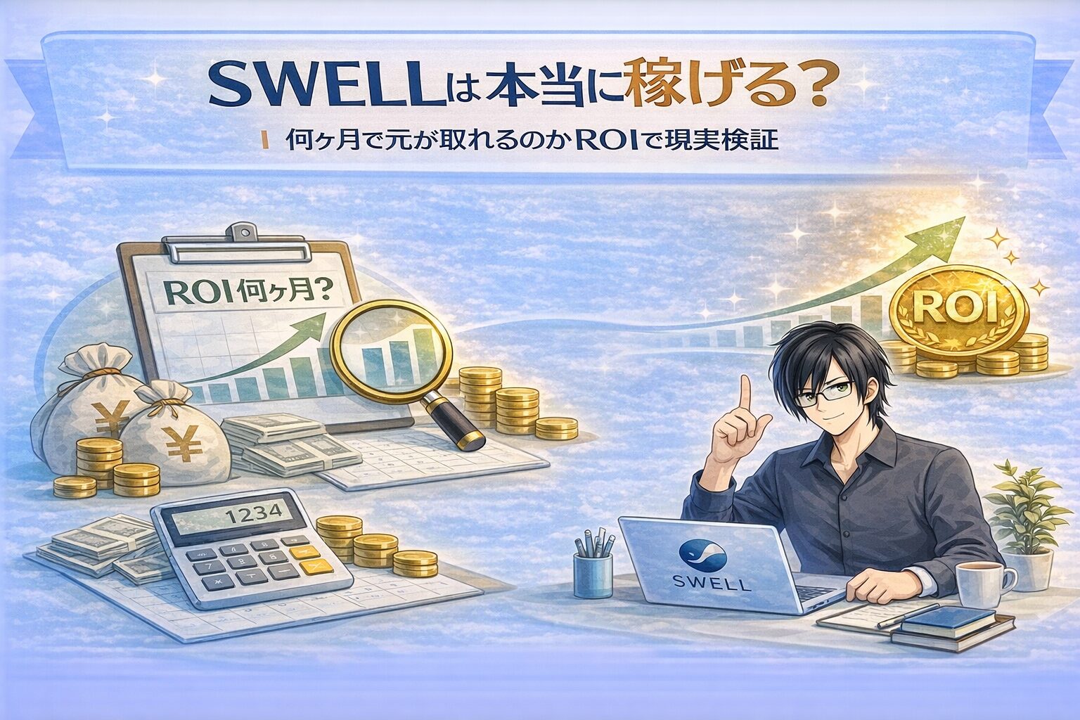 この記事では、会計・FPの視点からSWELLの価格を起点に、月2,000円・6,000円・10,000円といった現実的な収益ラインごとに、回収までの期間とROI(投資収益性)を数字で検証します。